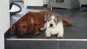 Unser 13 Jahre alte Kasper (Jack Russel) hat alle Pfoten voll zu tun, sie zu erziehen.