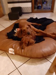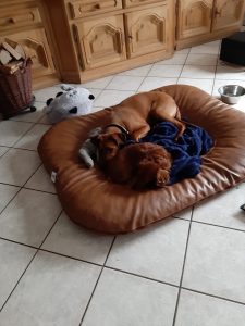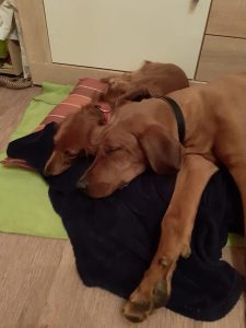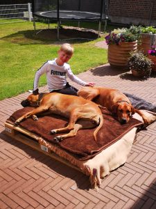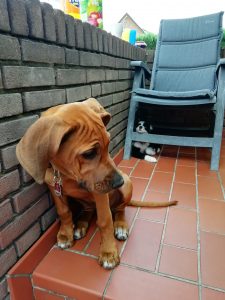 es ist nun 4 Wochen her das wir bei dir waren und Simba (bei dir hieß er noch Brutus☺) abgeholt haben. Er hat sich mittlerweile sehr gut eingelebt und sich an seine neue Heimat gewöhnt. Wir sind froh einen solch tollen und gelehrigen Hund zu haben und möchten ihn nicht mehr missen. Wir möchten uns an dieser Stelle auch noch mal für deinen Tipp mit dem Laufstall bedanken. Hätten wir bei unserem ersten Ridgeback Kani daran gedacht wären uns viele Renovierungen und teilweise neue Möbel erspart geblieben. An dieser Stelle auch der Hinweis das ein Laufstall nichts mit einem Käfig zu tun hat, Simba nutzt diesen mittlerweile auch als Rückzugsort. Er bleibt mittlerweile bis zu 5 Stunden problemlos alleine. Simba hat sich auch mit unserem Dackel Fee bestens arrangiert. Die beiden sind ein Herz und eine Seele und verstehen sich bestens.