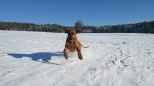 Wir sind ganz stolz auf unseren „kleinen“ vierbeinigen Partner. Er schreckt vor nichts zurück und hat vor nichts und niemandem Angst. Er ist ruhig und ausgeglichen, im Wald ein Power Paket und eine totale Wasserratte. Schon früh hat er angefangen Acht zu geben über Haus und Hof. Mit einem momentanen Stockmaß von 72cm und 47kg ist er auf dem besten Weg seinem Papa in die Fußstapfen zu treten.
